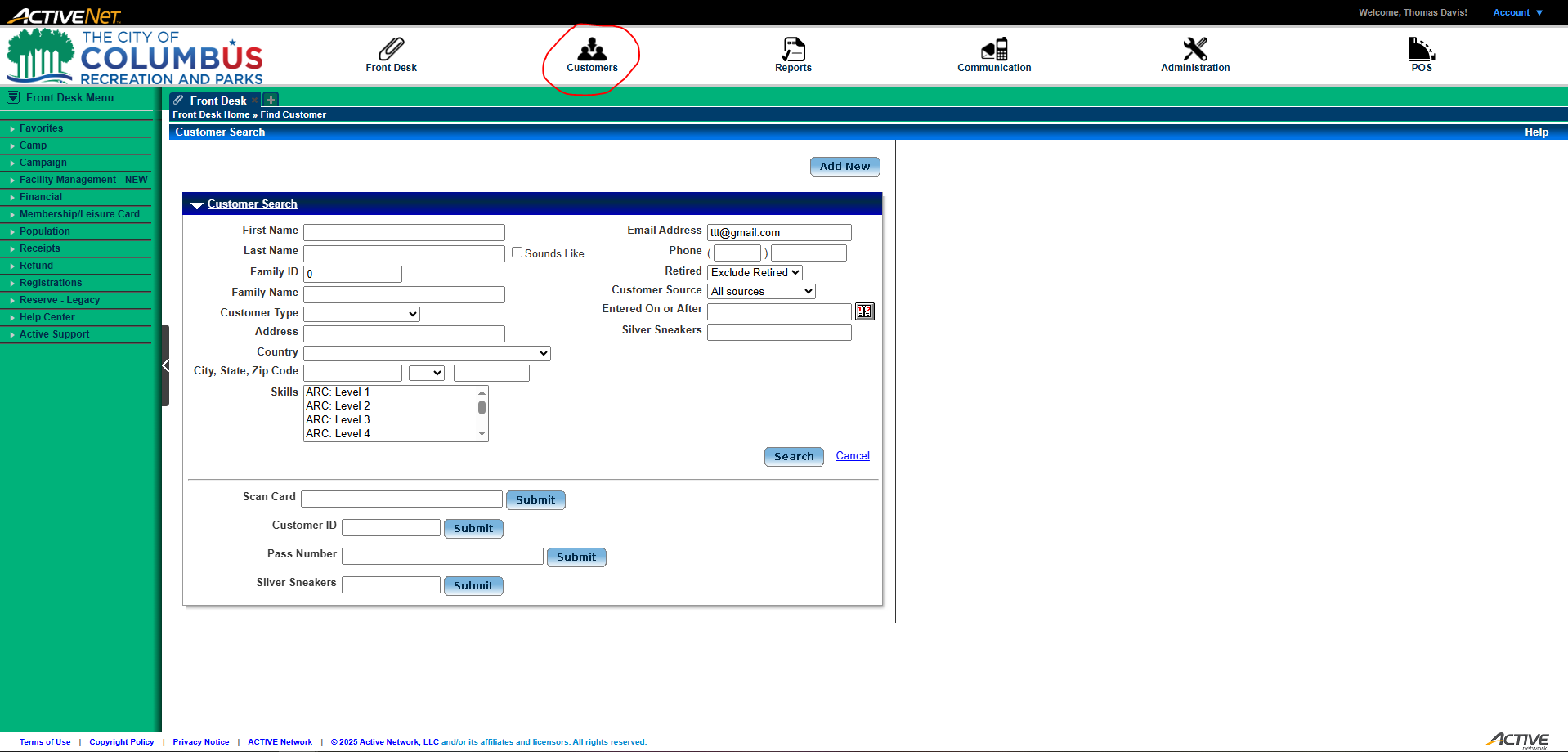 Ask the customer for the email address associated with the account and look up through the "Customers Icon"