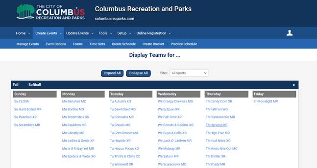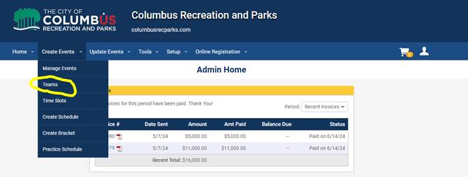 Create Events --> TeamsFrom the list, choose the name of the league.