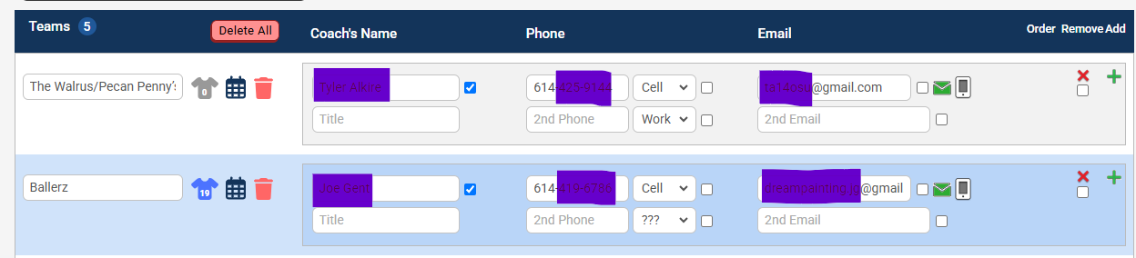 Captain's Name, Phone# and Email address are listed