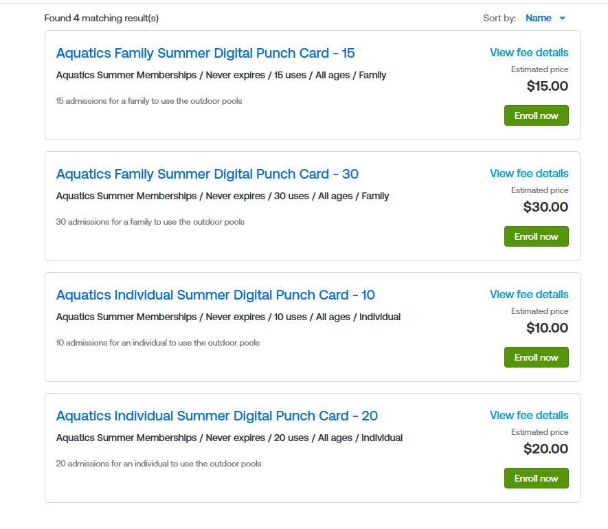 Once there, they will see the 4 options for purchasing a digital punch card.